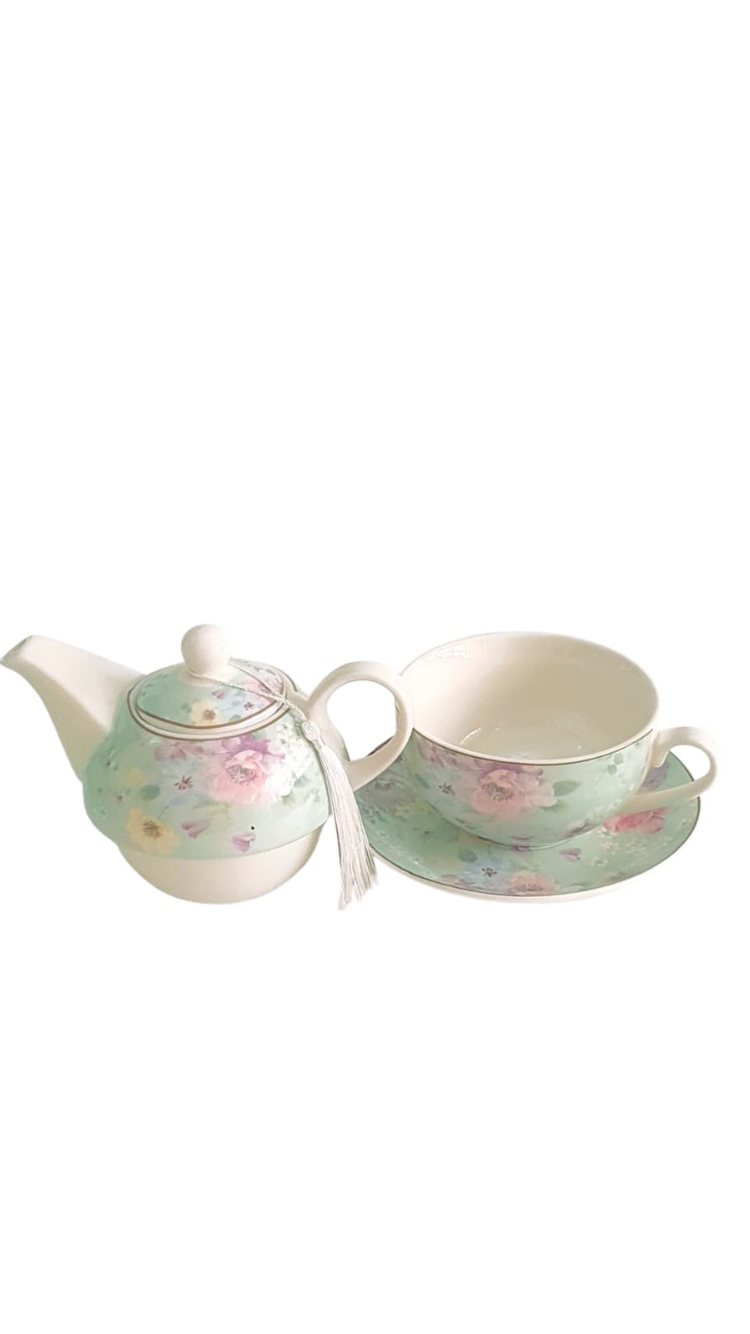 Ceramic Tea for One – Tea Pot Cup and Saucer Set