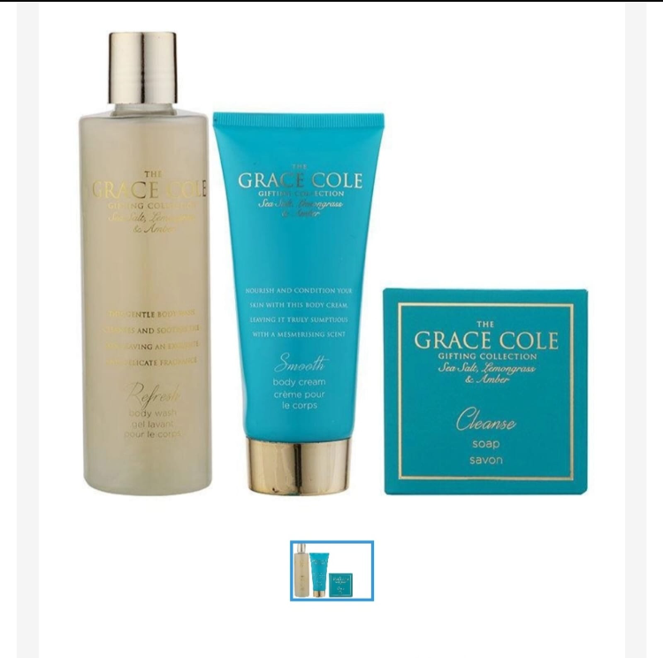 + Free ShippingThe Grace Cole Gifting Collection — Sea Salt Lemongrass & Amber Sophistication Set — 250ml Body Wash 150ml Body Cream 100g Soap