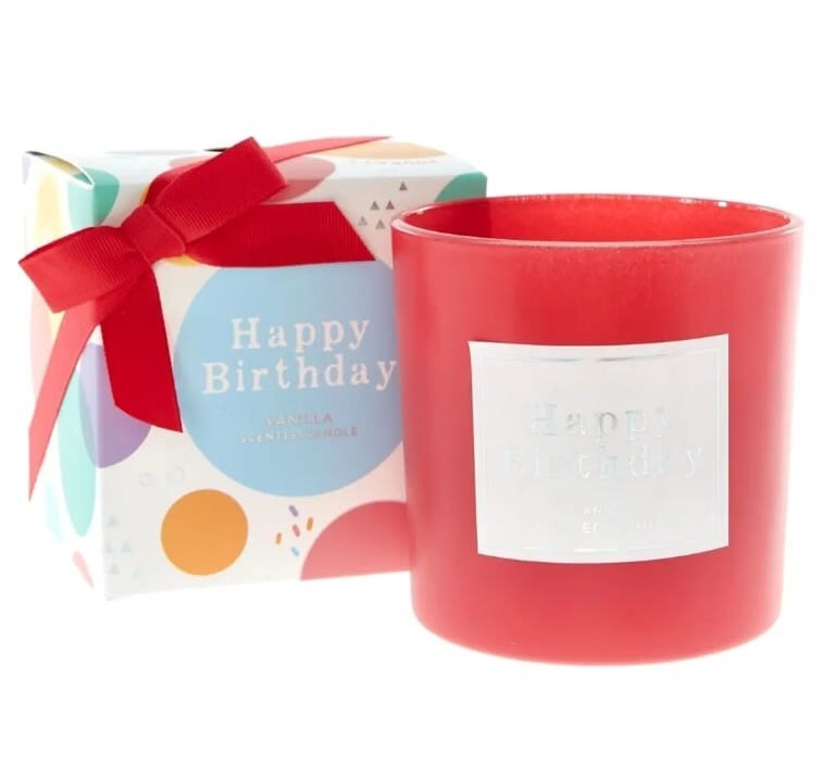 + Free ShippingThis vanilla scented candle comes in a glass jar and a lovely, colourful box featuring polka dots and a Happy Birthday” message. It makes a lovely gift for anyone who’s soon to be celebrating their special day and will fill their home with a really sweet scent.
