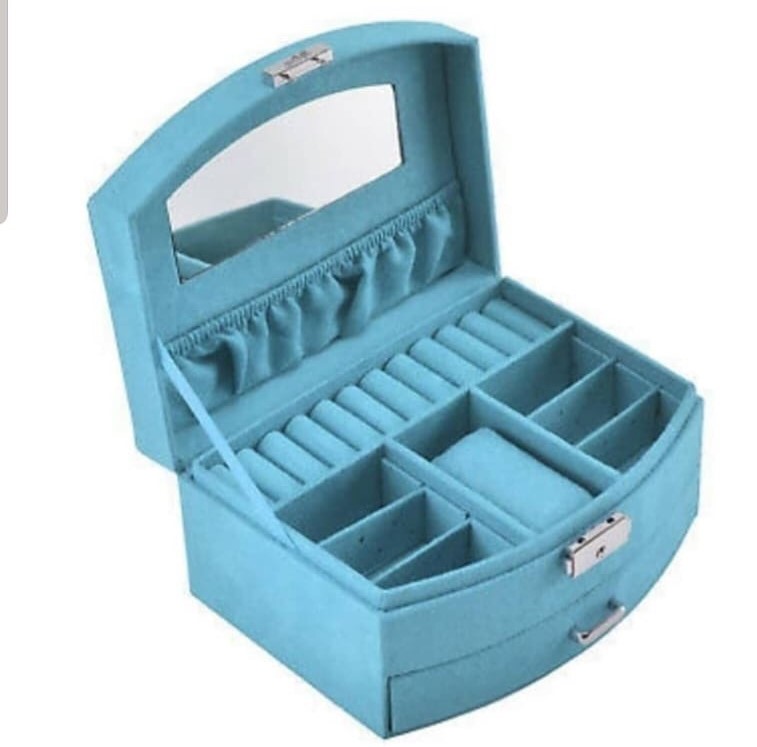 It has various compartments to store away your jewellery and a mirror for your vanity needs.