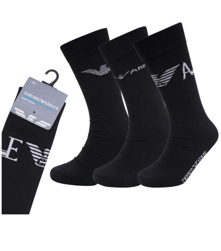 Men’s Emporio Armani Black Cotton Designer Dress Suit Sport Socks 3 Pack UK 6-11