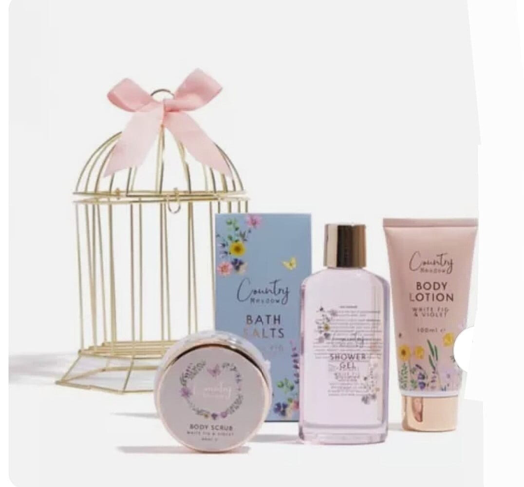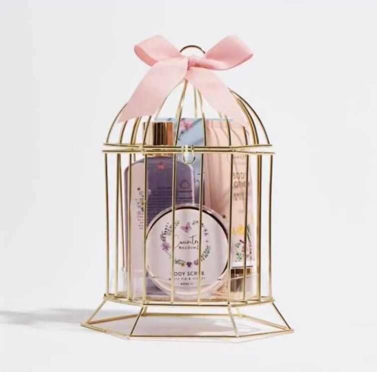 Includes: 1x Bath Salts, 1x Bird Cage, 1x Body Lotion, 1x Body Scrub, 1x Shower Gel