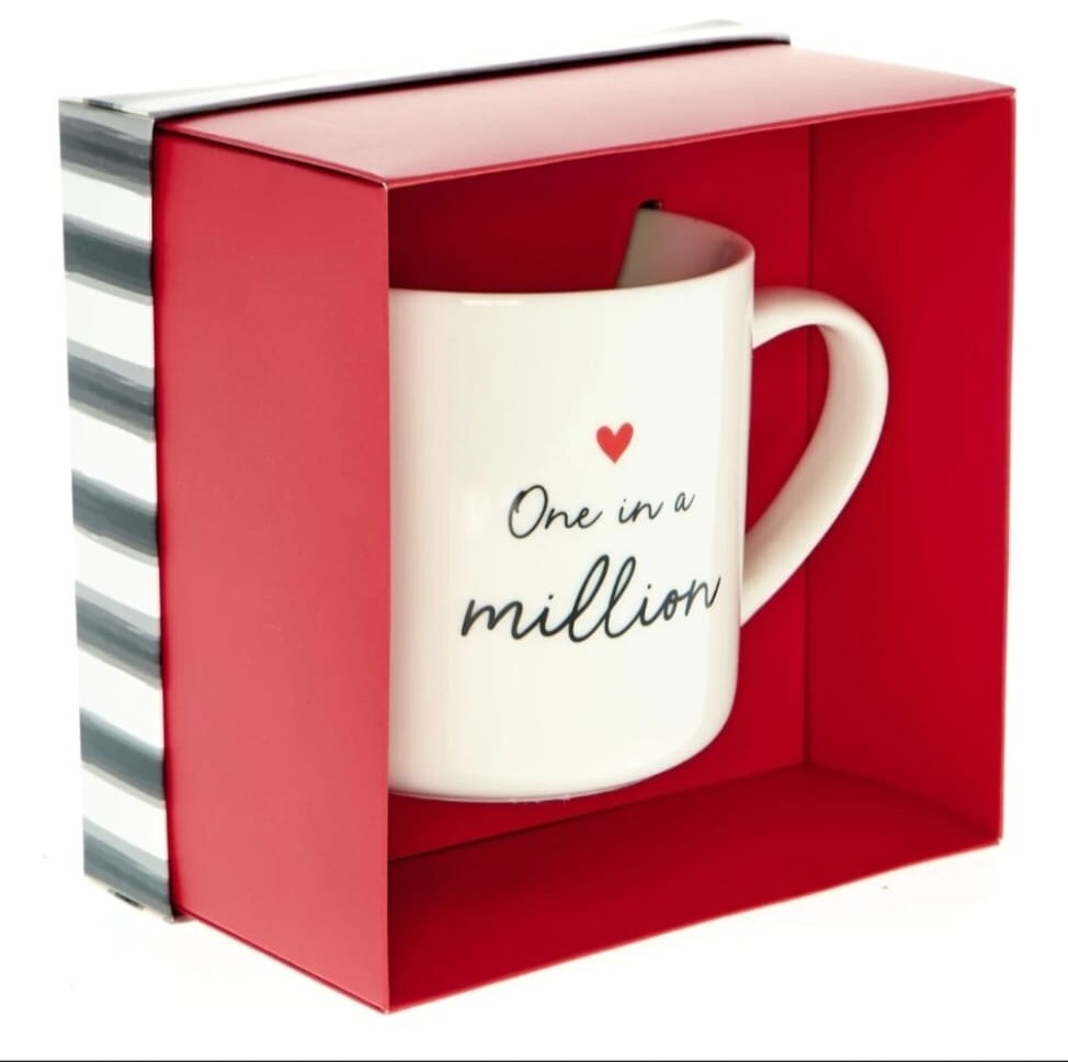 + Free ShippingThis stylish, sentimental mug in a box makes a great gift for your special someone on Valentine’s Day. Let them know they’re one in a million and make their morning coffee or tea even better.