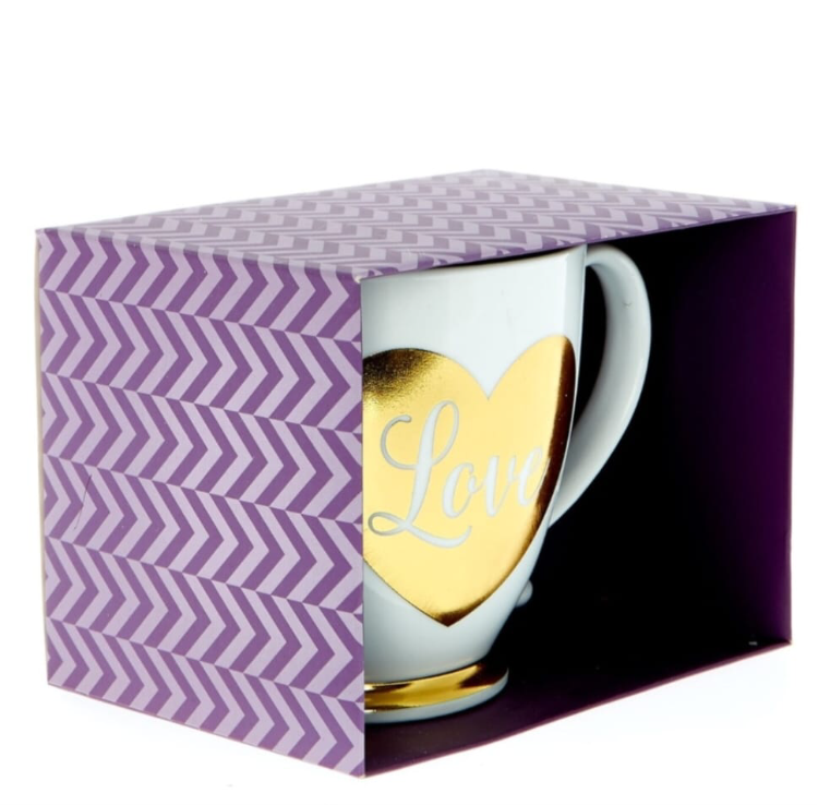 + Free ShippingTreat someone special to a gorgeous new mug! This one has a beautiful shape and a shimmering gold love heart design. The mug makes a great gift for a person who means a lot to you and who also enjoys their cuppas!