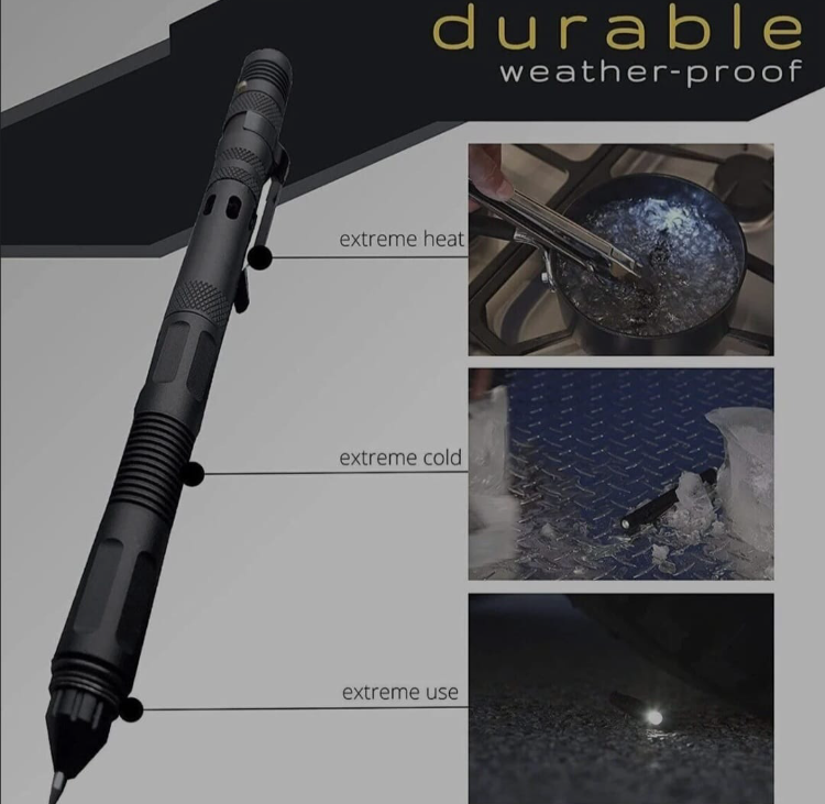 Be surprised. This military-grade technical pen has built-in tools the average person needs for but are nowhere to be found when they are needed the most. We took the statistics, materialized them into one item, and the result is Tac Pen by Bell+Howell.