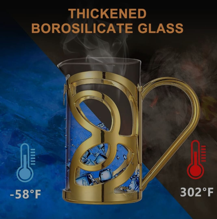 Durable and long-lasting: Our French press is made of high-quality borosilicate glass, which is heat-resistant and can withstand high temperatures, making it durable and long-lasting.