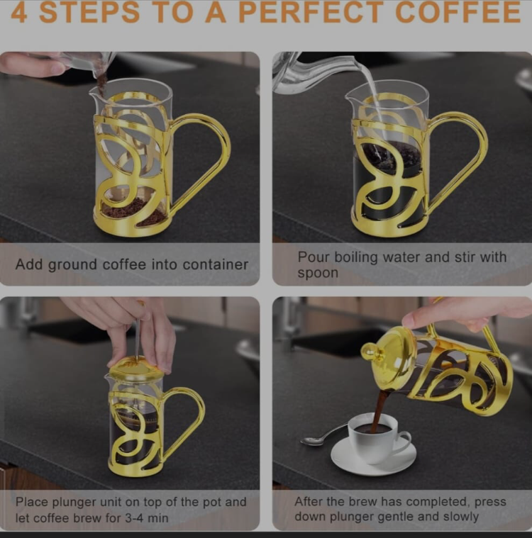 Pure coffee flavor: Glass French coffee machines are the preferred choice for many coffee enthusiasts because they can preserve the natural oils and flavors of coffee. Enjoy the rich and pure taste of coffee, free from sediment and gravel.
